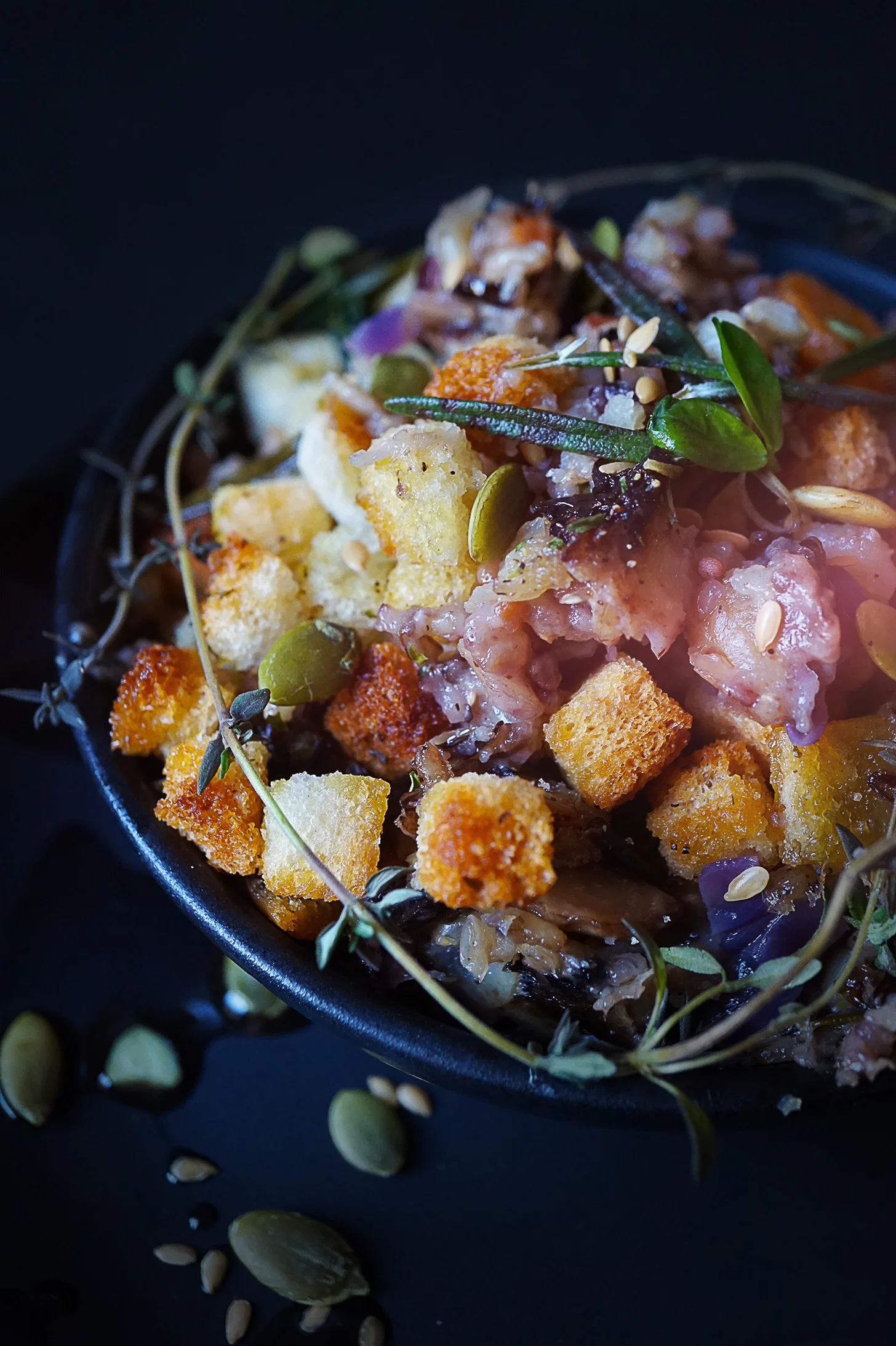 - Spoon our season butter mixture over top of bread cubes. Try not to soak them.