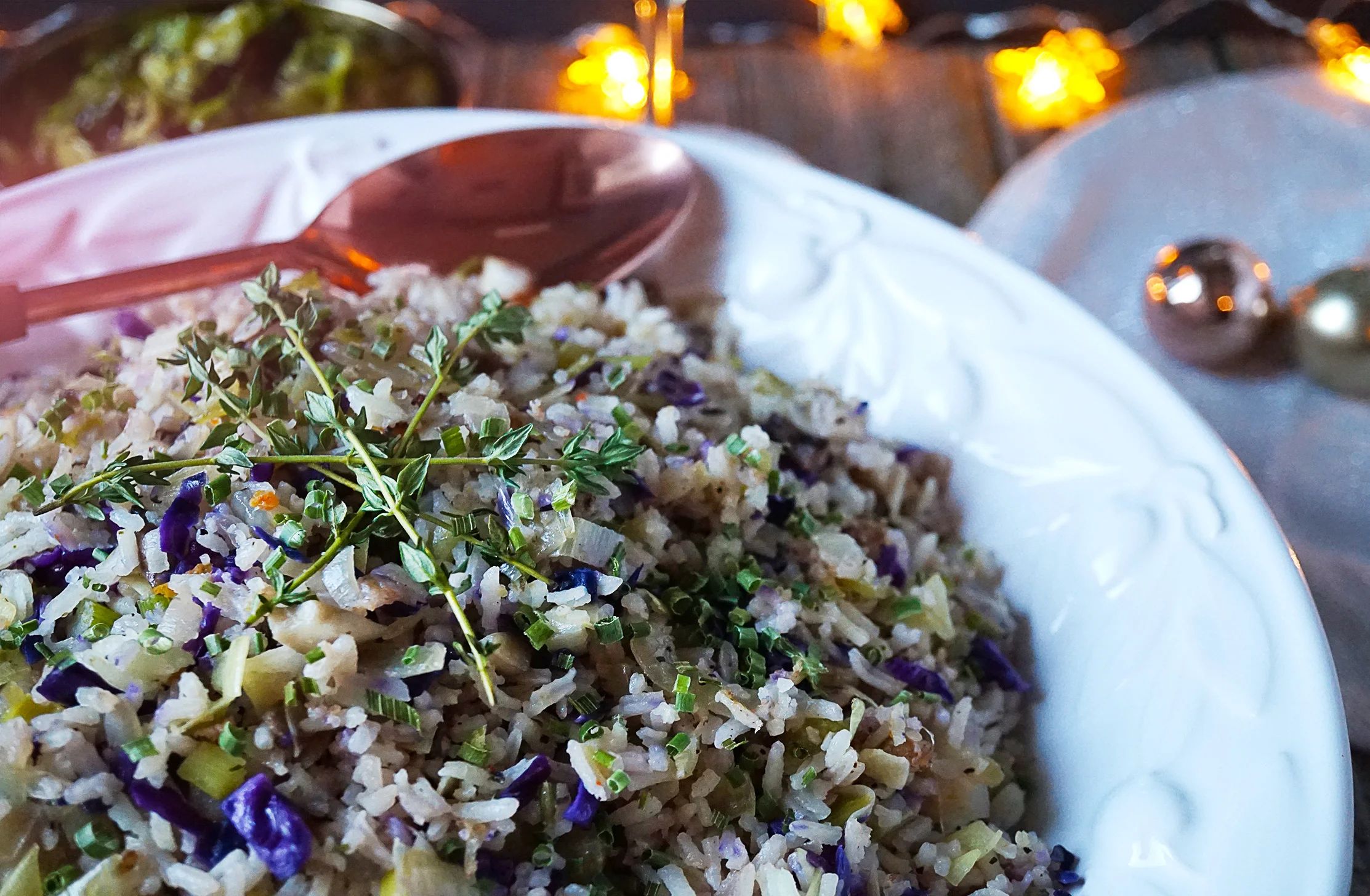 - Cook rice according to packaging instructions. Use vegetable broth instead of water.
