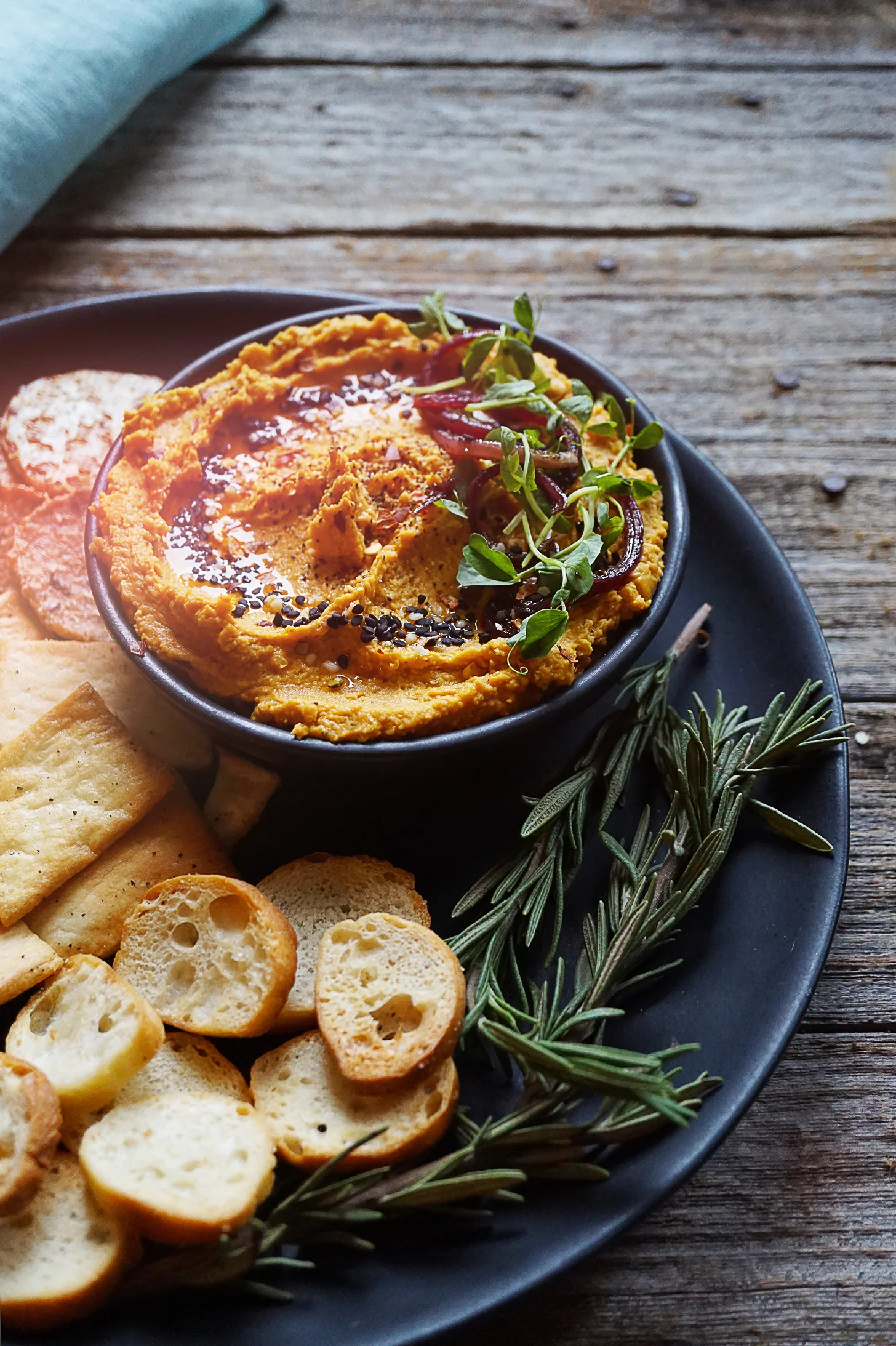 Pumpkin Hummus with Balsamic Caramelized Red Onions