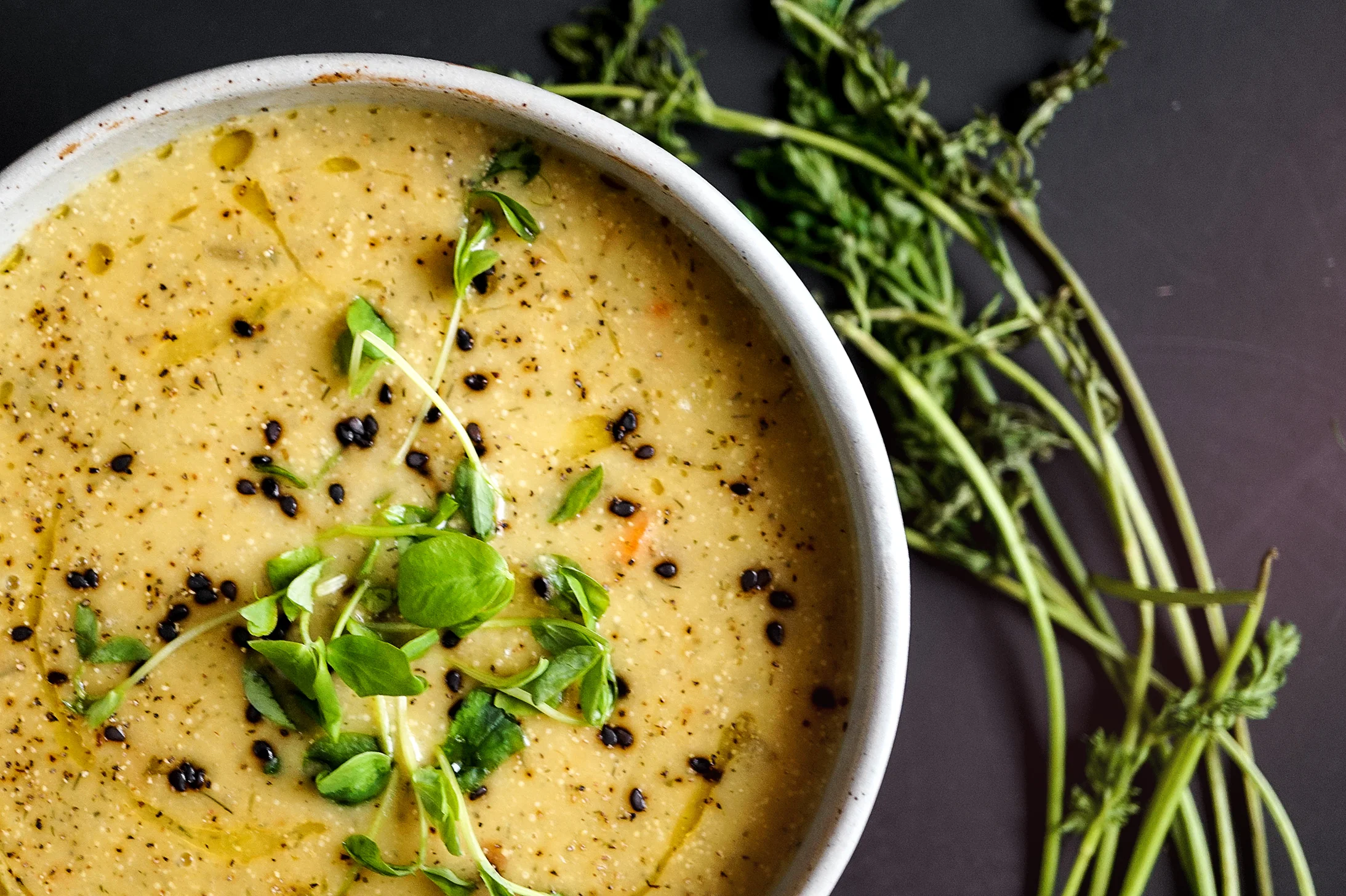 - Add the rest of the ingredients and stir to combine. Bring the soup to a slight boil, then reduce heat to simmer for 20 minutes. In the last 10 minutes, take 2/3 of the soup and pour into a blender. Blitz for a minute or until smooth. Add this back to the soup pot and continue to simmer for the remaining 10 minutes.