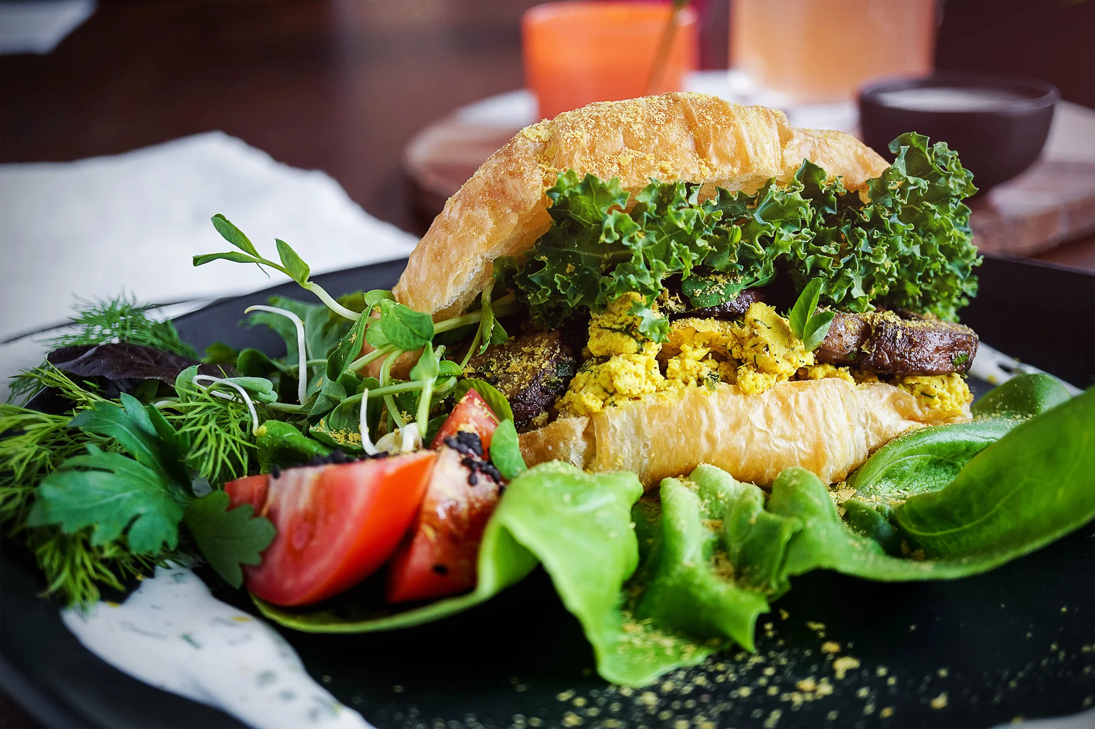 Croissants stuffed with Dill Scrambled Tofu and Chive Aioli